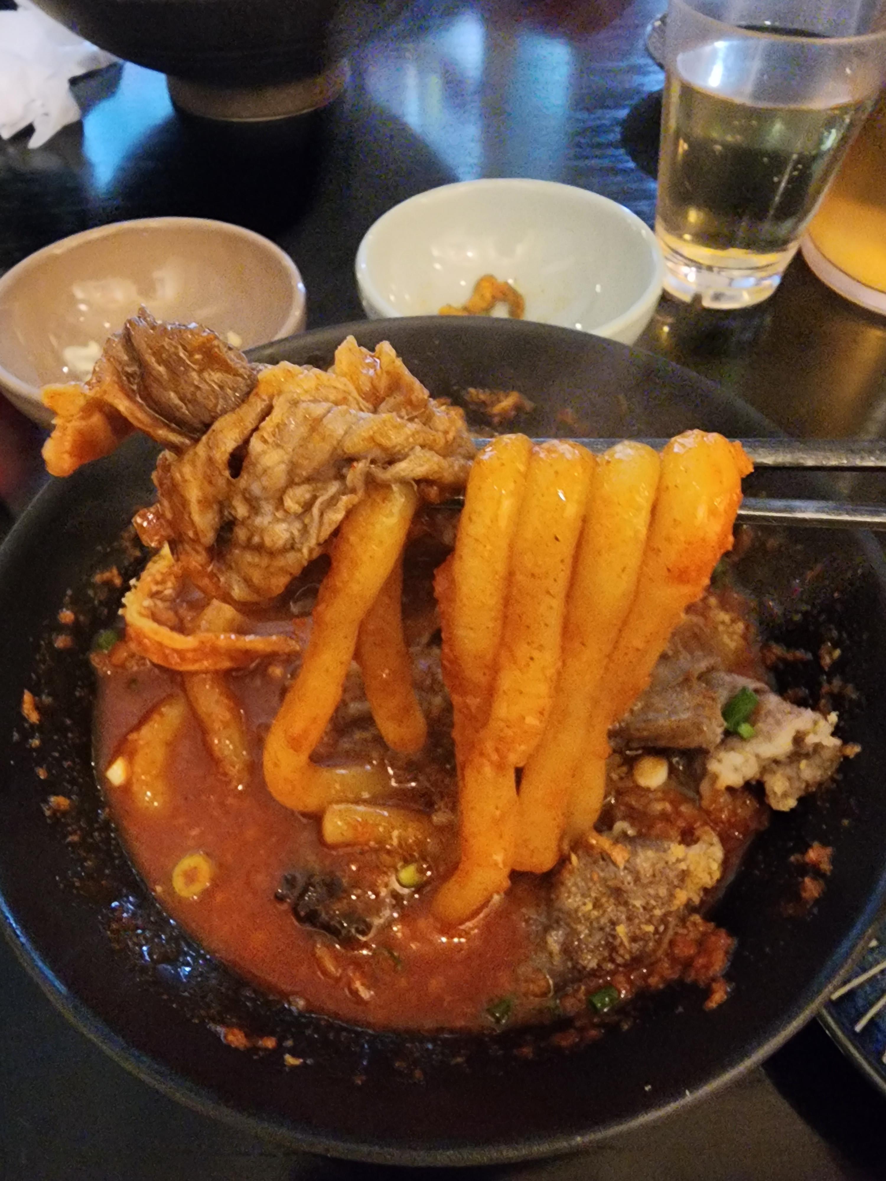 오이지 떡볶이는 정말 얇은 떡을 길게 뽑아주는데