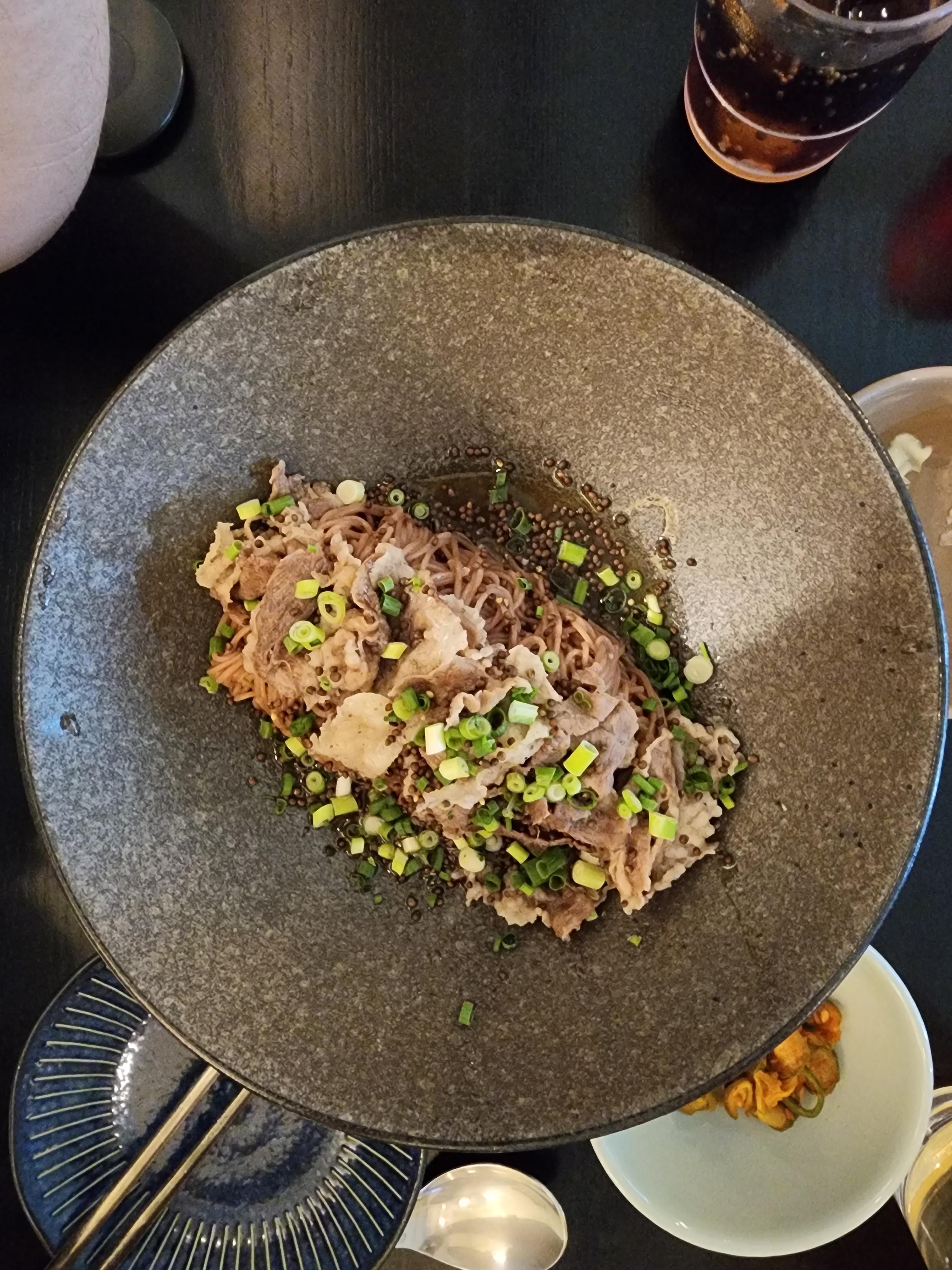 뭐, 차돌을 올려주고 면에 국수에 고추장 소스면