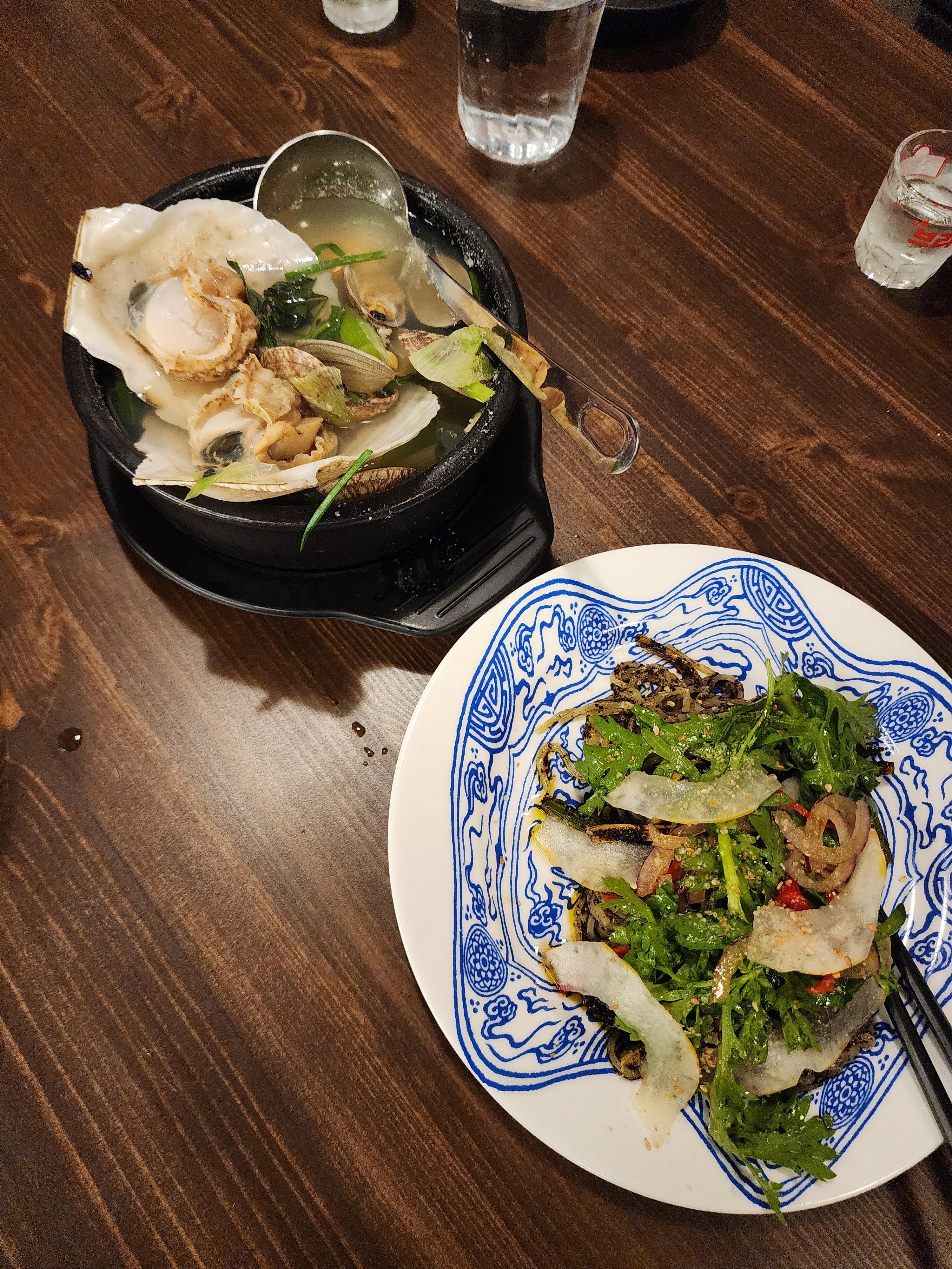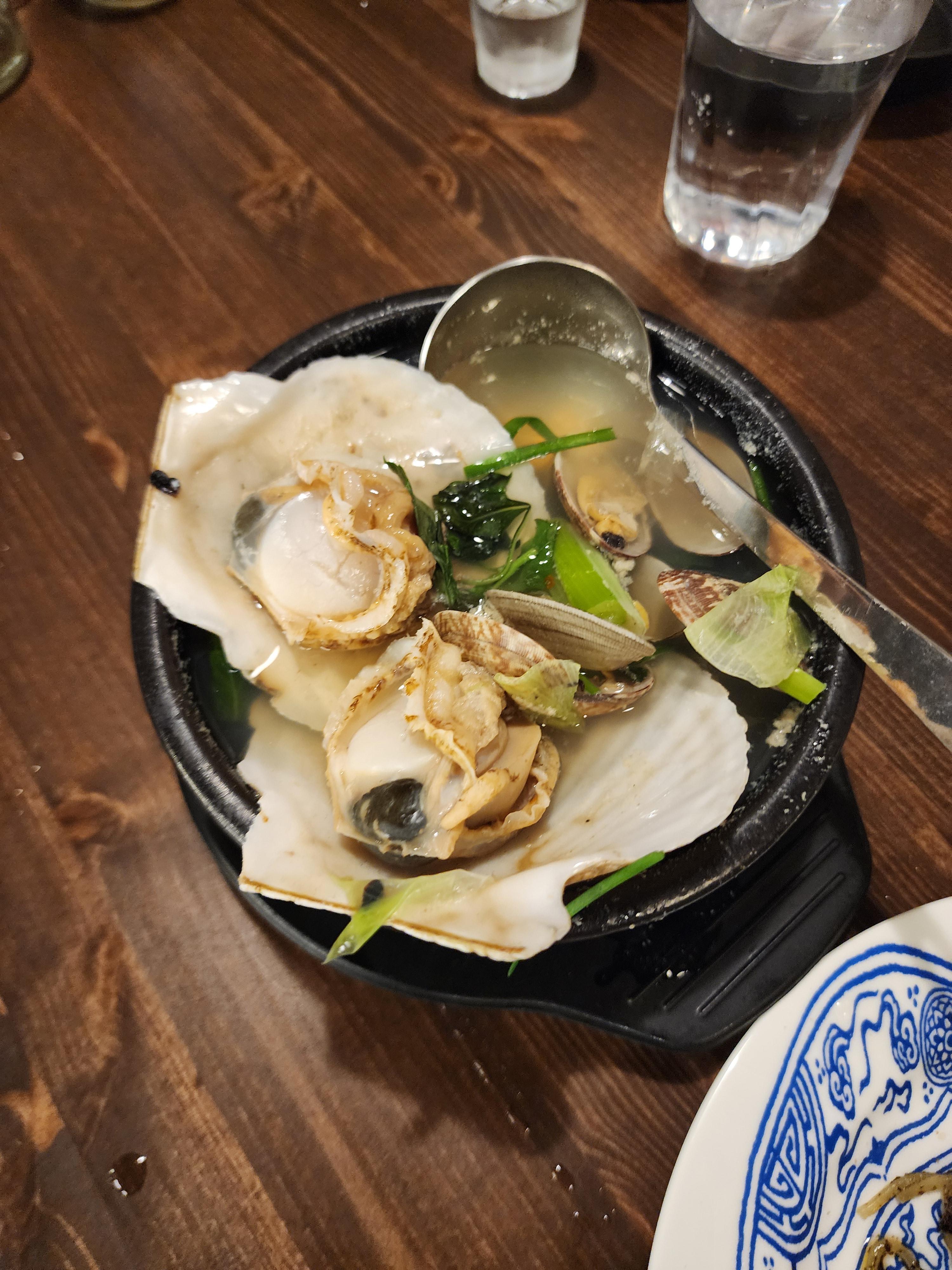 조개찜이 나왔고 큼직한 조개들이 위에 올라가있는데