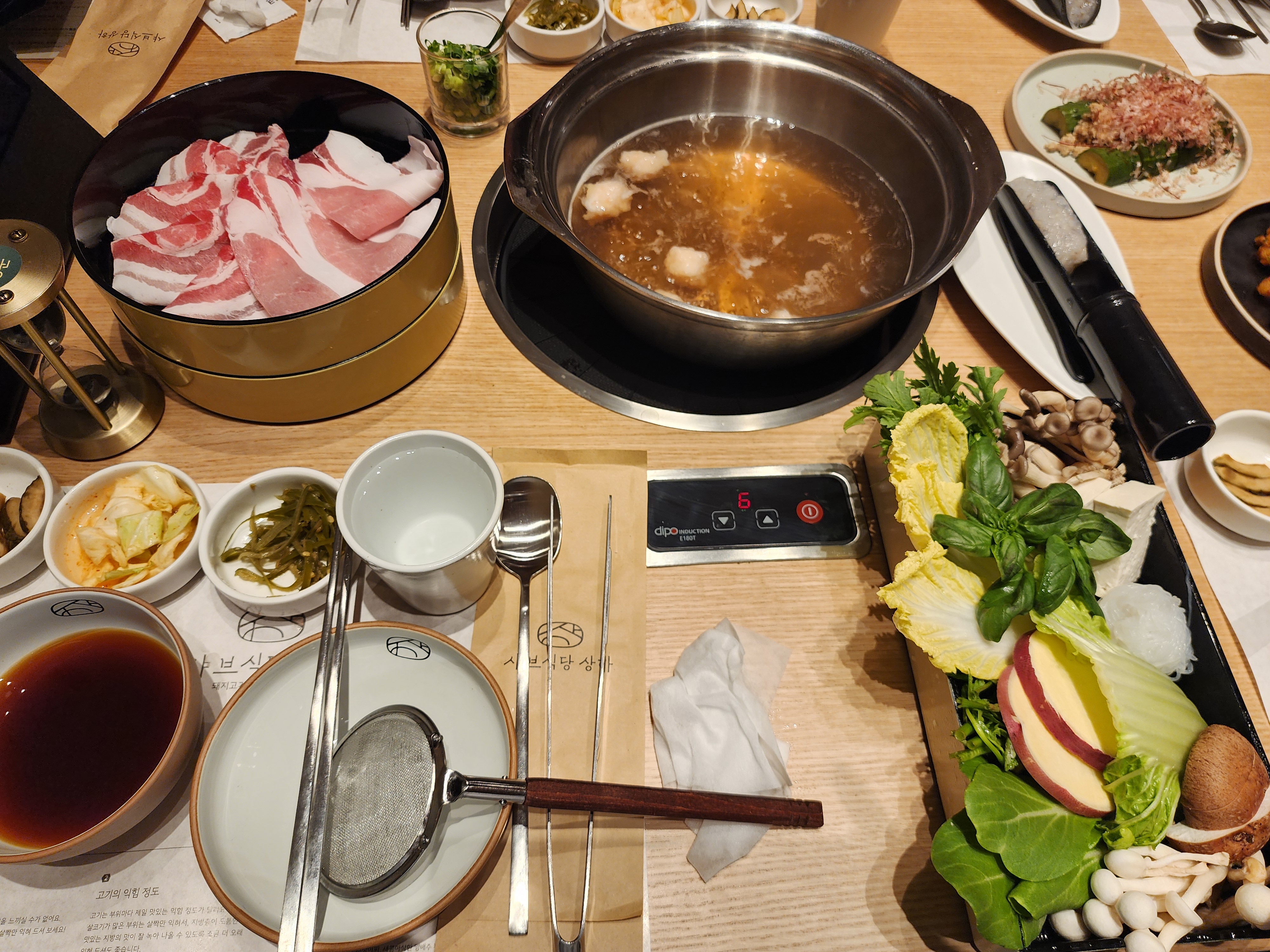 샤브가 건강하게 슴슴한 맛이 베이스라 강한 소스가 없어서 힘들었다.