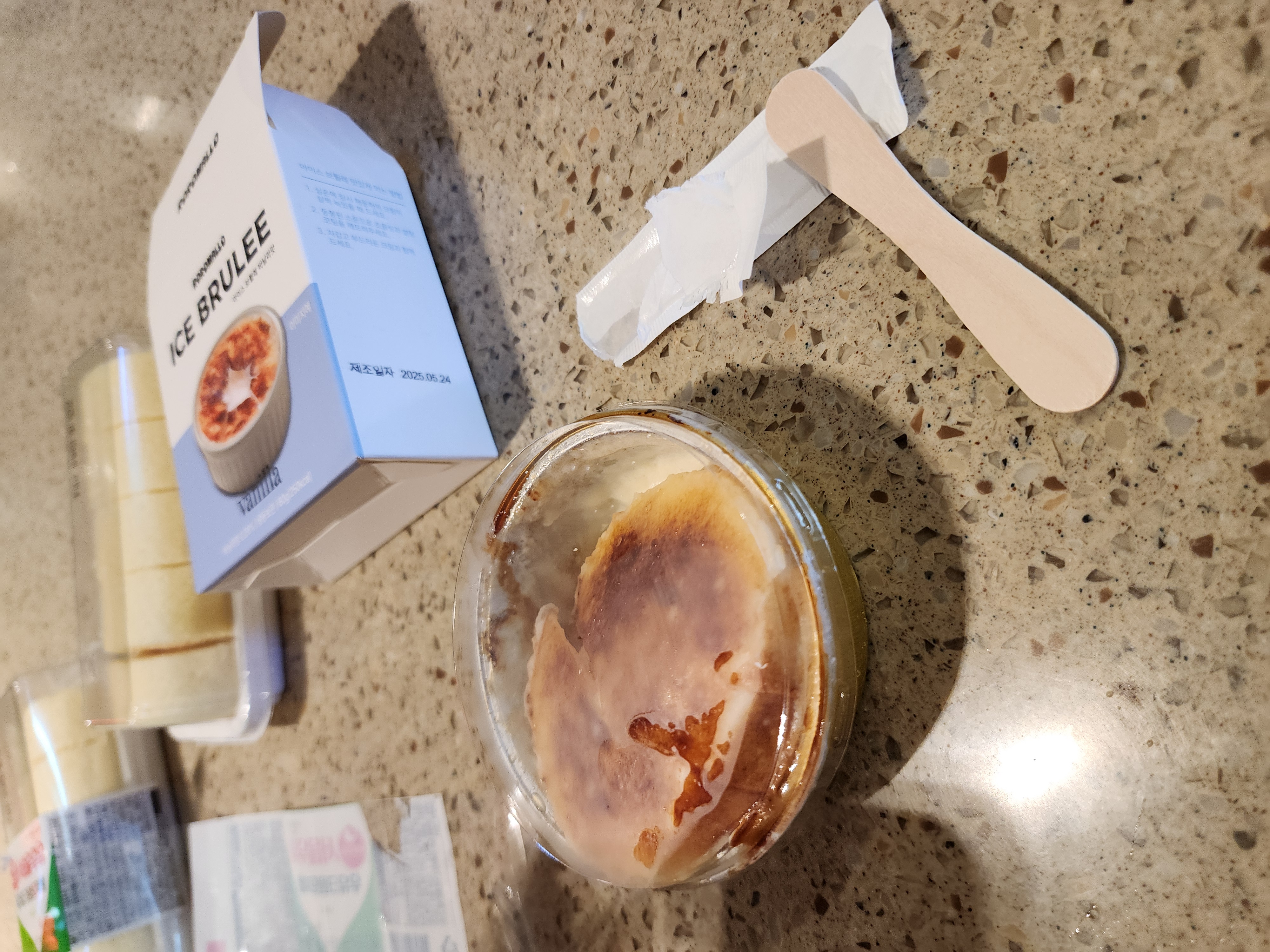 설탕 부분도 단단하기만 하고, 기대했던 바삭한 캐러멜 층 특유의 식감은 없었어요. 전체적으로 비싸게 주고 굳이 다시 사 먹고 싶은 맛은 아니었네요.