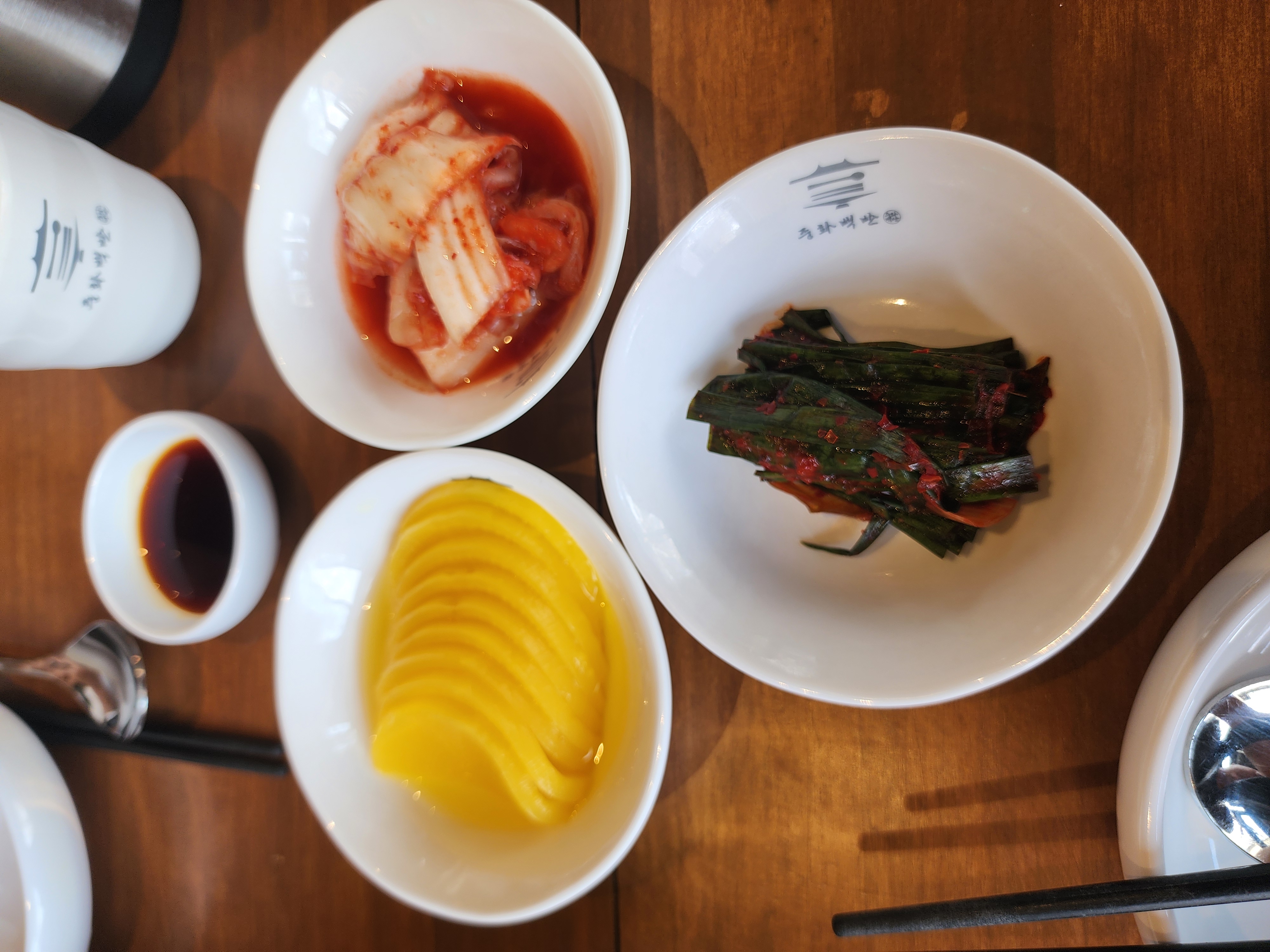 반찬이 단무지 말고도, 김치와 부추절임을 주셨다.