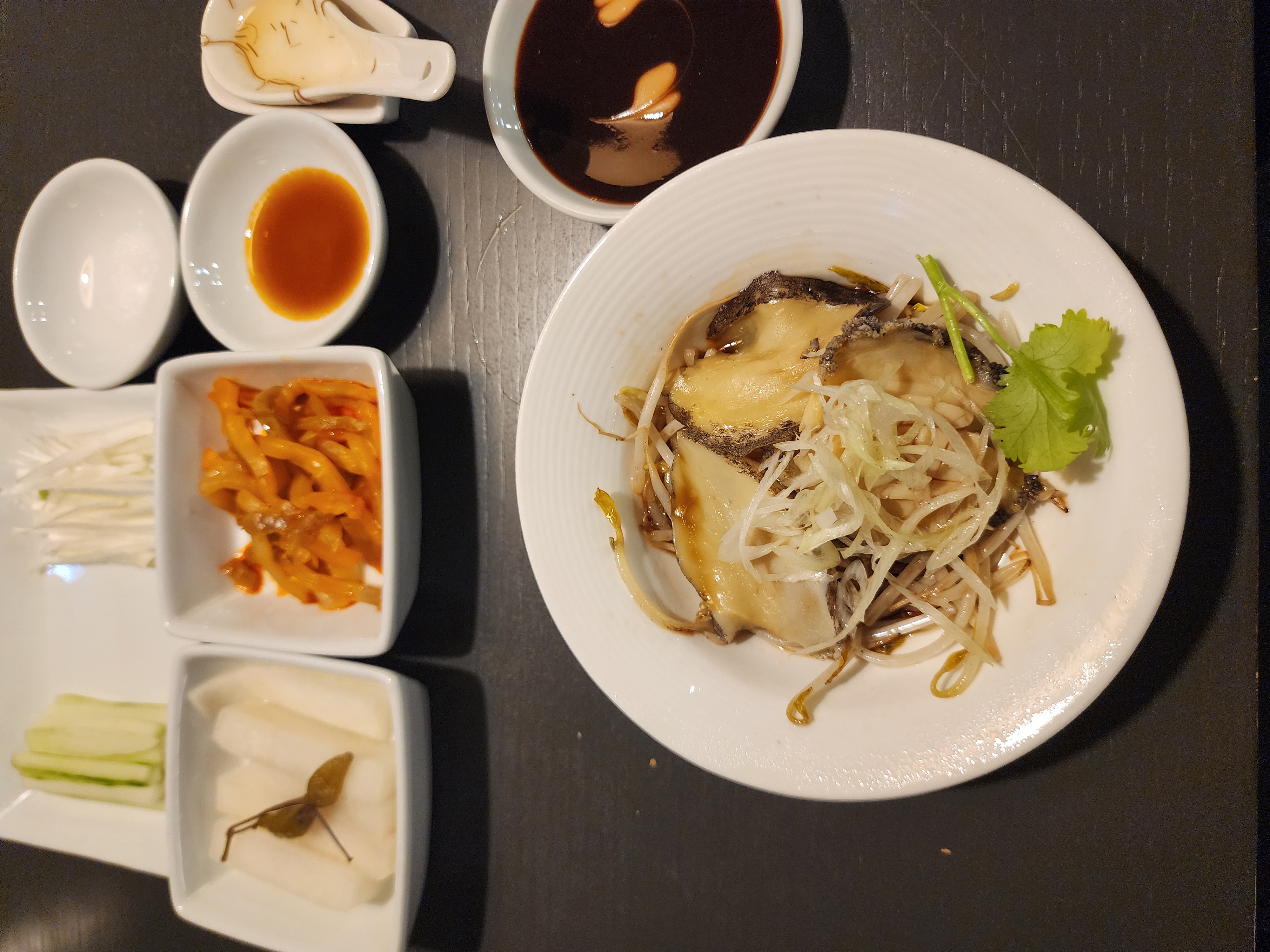 전복의 야들야들한 식감과, 그 속에 간장의 풍미가 일품입니다.