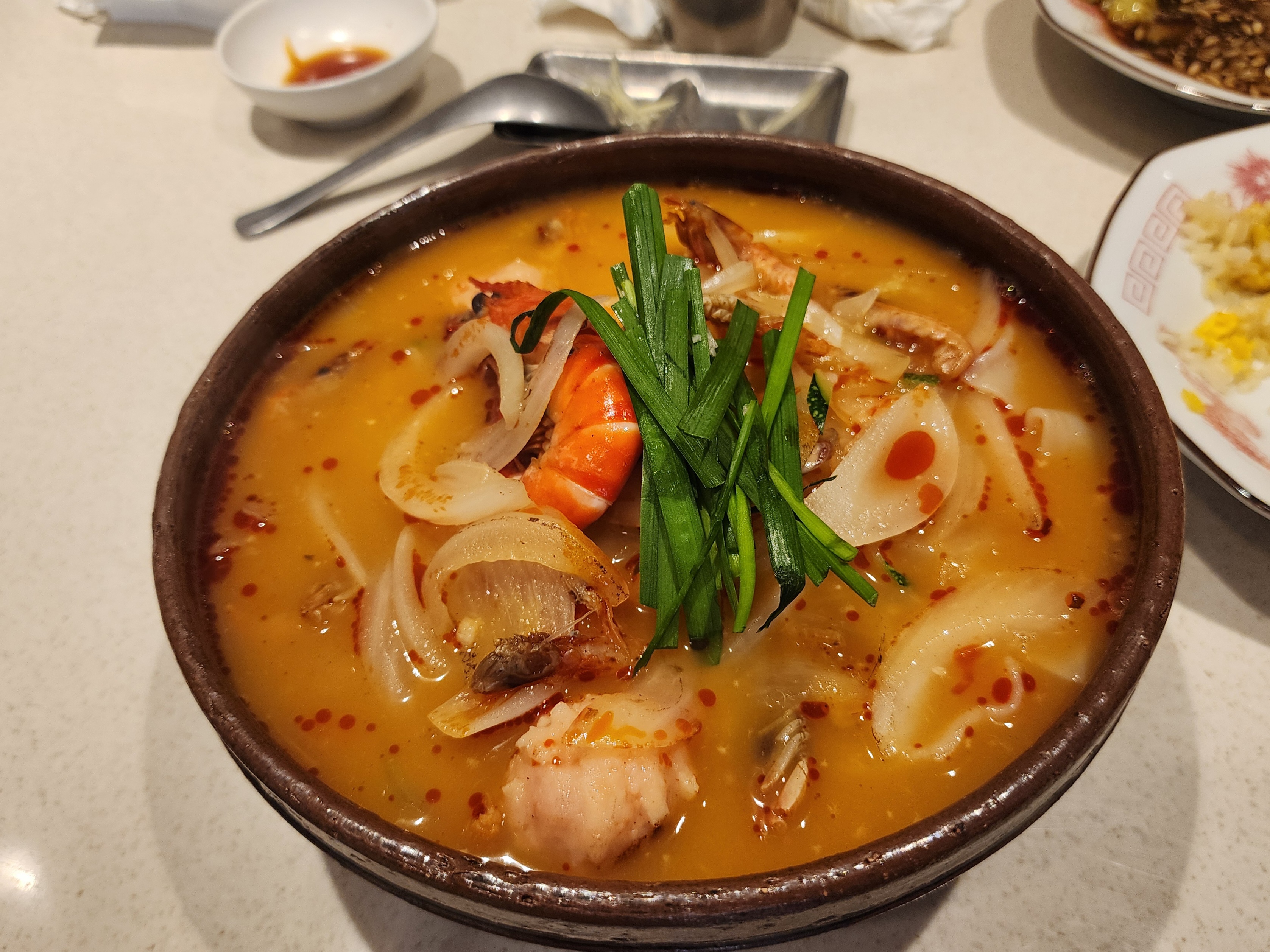 새우탕면으로 짬뽕과 같은 느낌일 것 같은데, 짬뽕보다 매우 맑고 국에 가까웠습니다.
